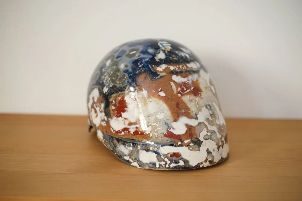 Motorradhelm, Polyesterharz, Pigment. 30cm x 25cm x 20 cm